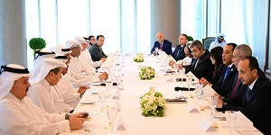 التقى الدكتور مصطفى مدبولي، رئيس الوزراء، ظهر اليوم، رابطة رجال الأعمال القطريين، برئاسة الشيخ فيصل بن قاسم آل ثاني، وذلك على هامش حضوره نيابة عن الرئيس عبدالفتاح السيسي، رئيس الجمهورية، فعاليات القمة الأولى لقادة التحالف العالمي لمكافحة الجوع والفقر، والتي تنعقد بالعاصمة القطرية الدوحة، وذلك بحضور السفير وليد الفقي، سفير مصر لدى قطر.