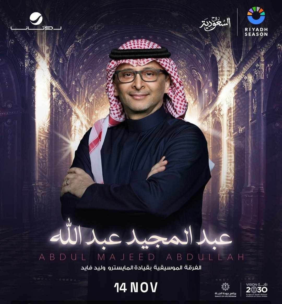 يستعد المطرب السعودي عبد المجيد عبد الله، لإحياء حفل غنائي في العاصمة السعودية الرياض ضمن فعاليات موسم الرياض، يوم ١٤ نوفمبر الجاري على خشبة مسرح محمد عبده ارينا.