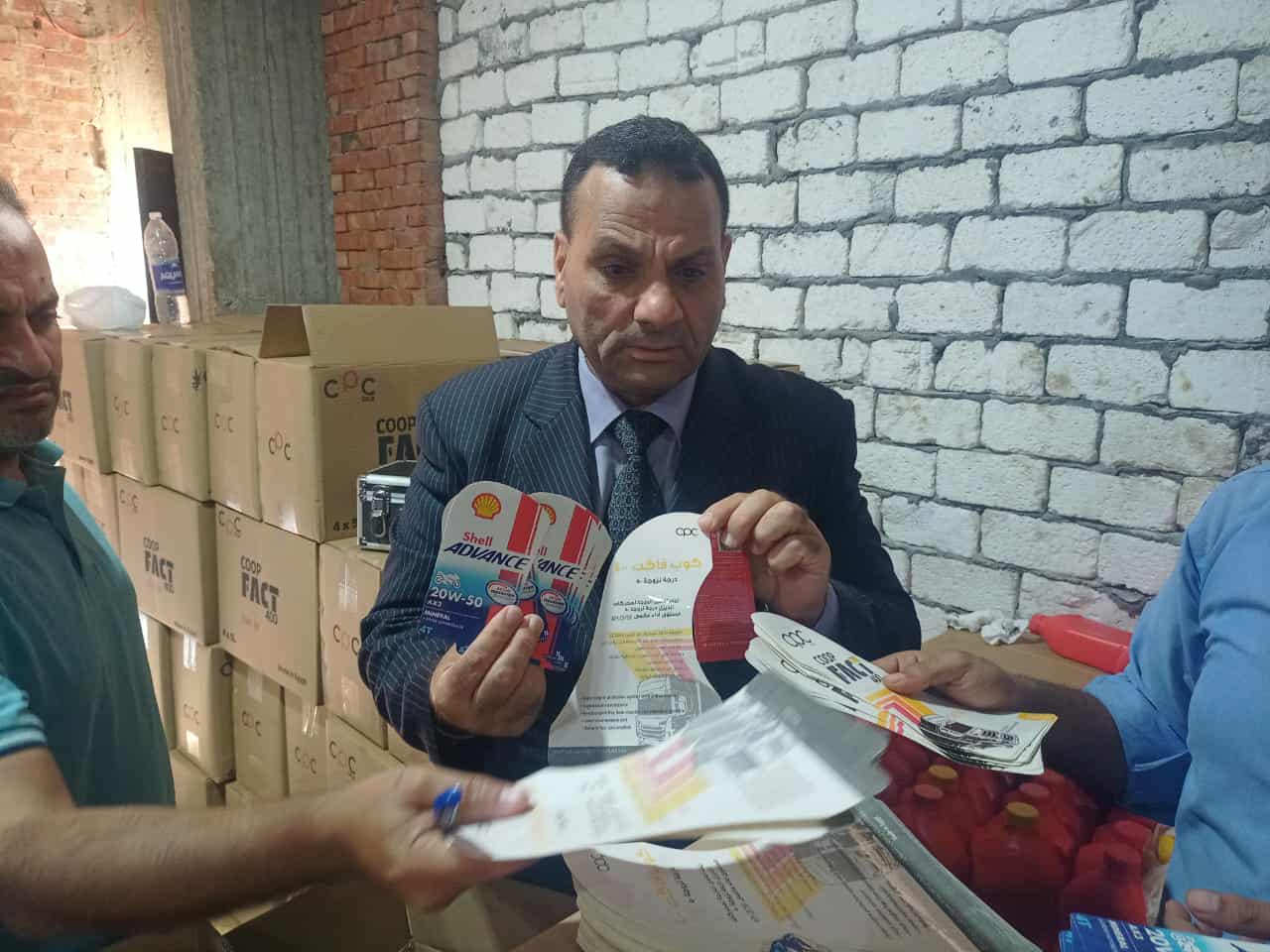 و أسفرت الحملة عن ضبط مخزن بدون ترخيص يقوم بإعادة تعبئة وتدوير زيوت السيارات داخل جراكن تحمل علامات تجارية مقلدة حيث تم ضبط كمية تسعة آلاف لتر زيت سيارات سائب معاد تدويره داخل تنكات وثلاثة آلاف لتر زيت داخل جراكن معبأة بعلامات تجارية مقلدة وستمائة وخمسين جركن فارغ معد للبيع وثلاثة آلاف أستيكر لعلامات تجارية مقلدة بالإضافة إلى ماكينة طباعة وماكينة تغليف