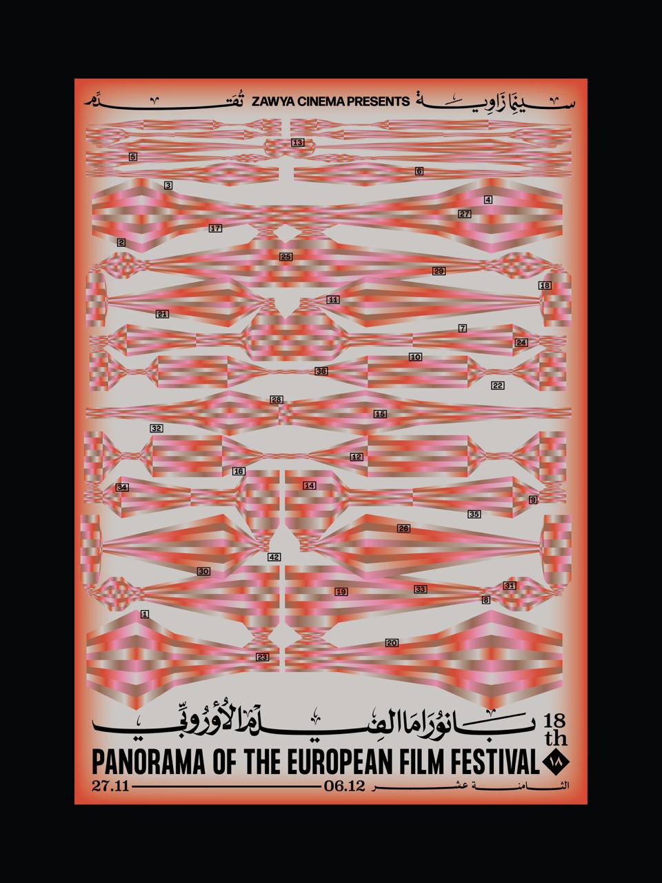 وعُرفت بانوراما الفيلم الأوروبي على مدار سنواتها بهويتها البصرية المميزة وملصقاتها التي حازت علي جوائز، ويستمد ملصق هذا العام إلهامه من جوهر عملية صناعة الفيلم نفسها، ويعبر عن “خط الزمن” الخاص بالمونتاج السينمائي، حيث تمثل ألوانه المتعددة الطبقات السردية التي تتداخل وتمتزج لتشكل نسيج الفيلم.