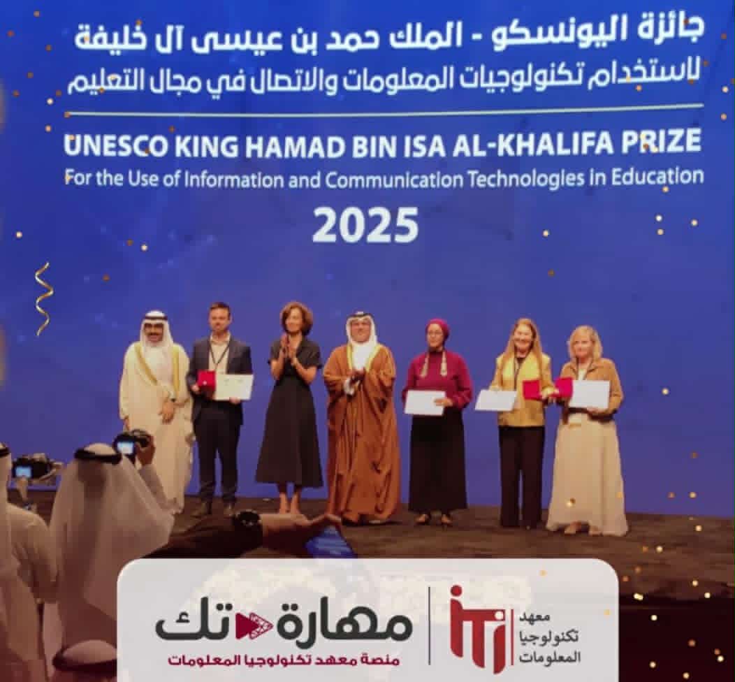 أعلنت منظمة الأمم المتحدة للتربية والعلم والثقافة (اليونسكو) عن فوز منصة "مهارة-تك"، التابعة لمعهد تكنولوجيا المعلومات (ITI)، بجائزة اليونسكو – الملك حمد بن عيسى آل خليفة لاستخدام تكنولوجيا المعلومات والاتصالات فى مجال التعليم لعام 2025، وذلك ضمن أربعة مشروعات عالمية فائزة بهذه الجائزة التى تُمنح هذا العام تحت شعار: "إعداد المتعلمين والمعلمين للاستخدام الأخلاقى والمسؤول للذكاء الاصطناعى".