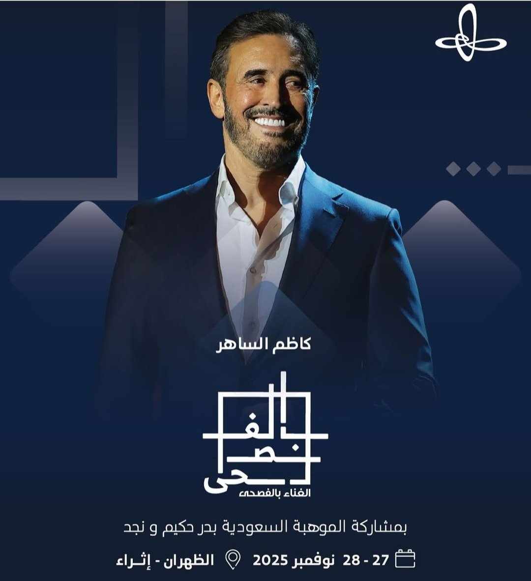 أعلنت إدارة مهرجان "الغناء بالفصحى" في المملكة العربية السعودية عن إحياء المطرب العراقي كاظم الساهر حفلين غنائيين يومي 27 و28 نوفمبر الجاري، على خشبة مسرح إثراء في مدينة الظهران.