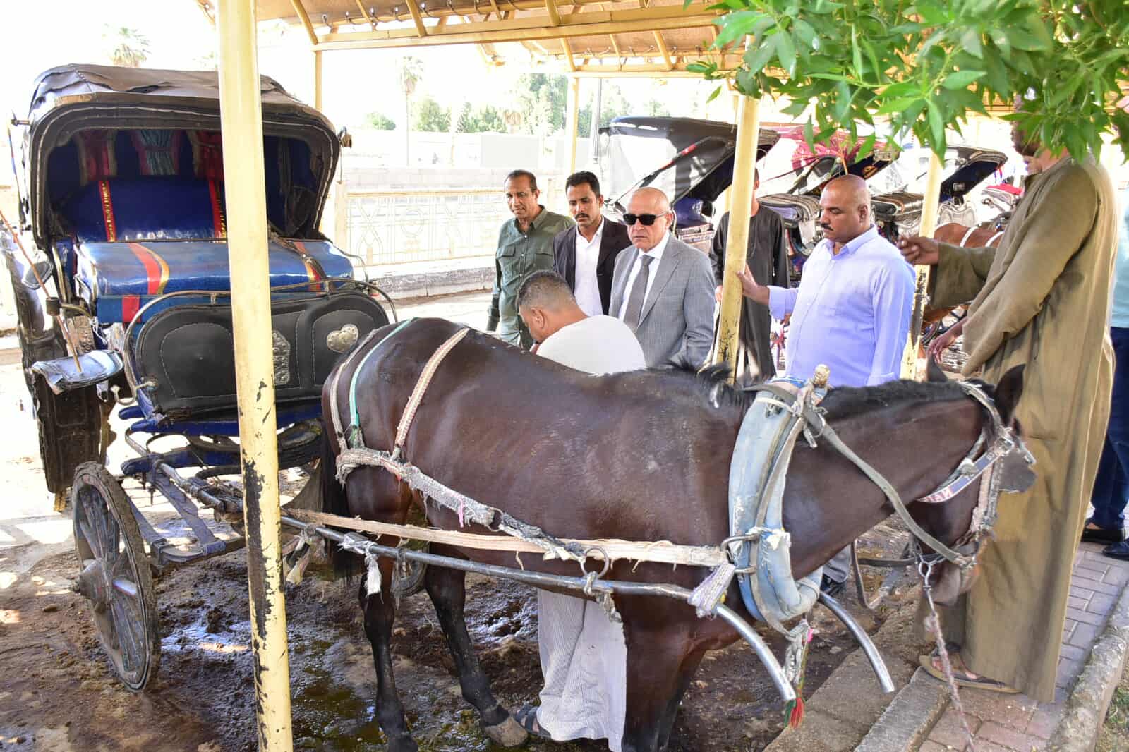 وشملت الجولة مواقف الحناطير بعدة مناطق منها موقف حنطور مرحبا، وموقف حنطور مسجد أحمد النجم المجاور لمعبد الأقصر، وموقف الحناطير بمنطقة معابد الكرنك، حيث التقى المحافظ بعدد من أصحاب وسائقي العربات، وحثهم على الالتزام بالنظافة وحسن معاملة الزائرين المصريين والأجانب، وعدم الوقوف العشوائي، مؤكدًا أن عربات الحنطور تمثل وجهًا حضاريًا للمدينة أمام السياح.