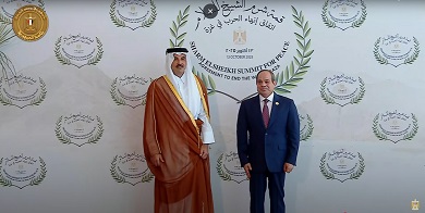 وكان الرئيس عبدالفتاح السيسي، في استقبال أمير قطر لدى وصوله إلى مقر انعقاد القمة، حيث دار بينهما حديث ودي، والتقطت لهما صورة تذكارية.