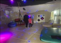 على الطرف الآخر من المجمع، تعمل مروة النجار، أخصائية التكامل الحسى، مع مجموعة من الأطفال الذين يعانون من اضطرابات حركية أو حسية.