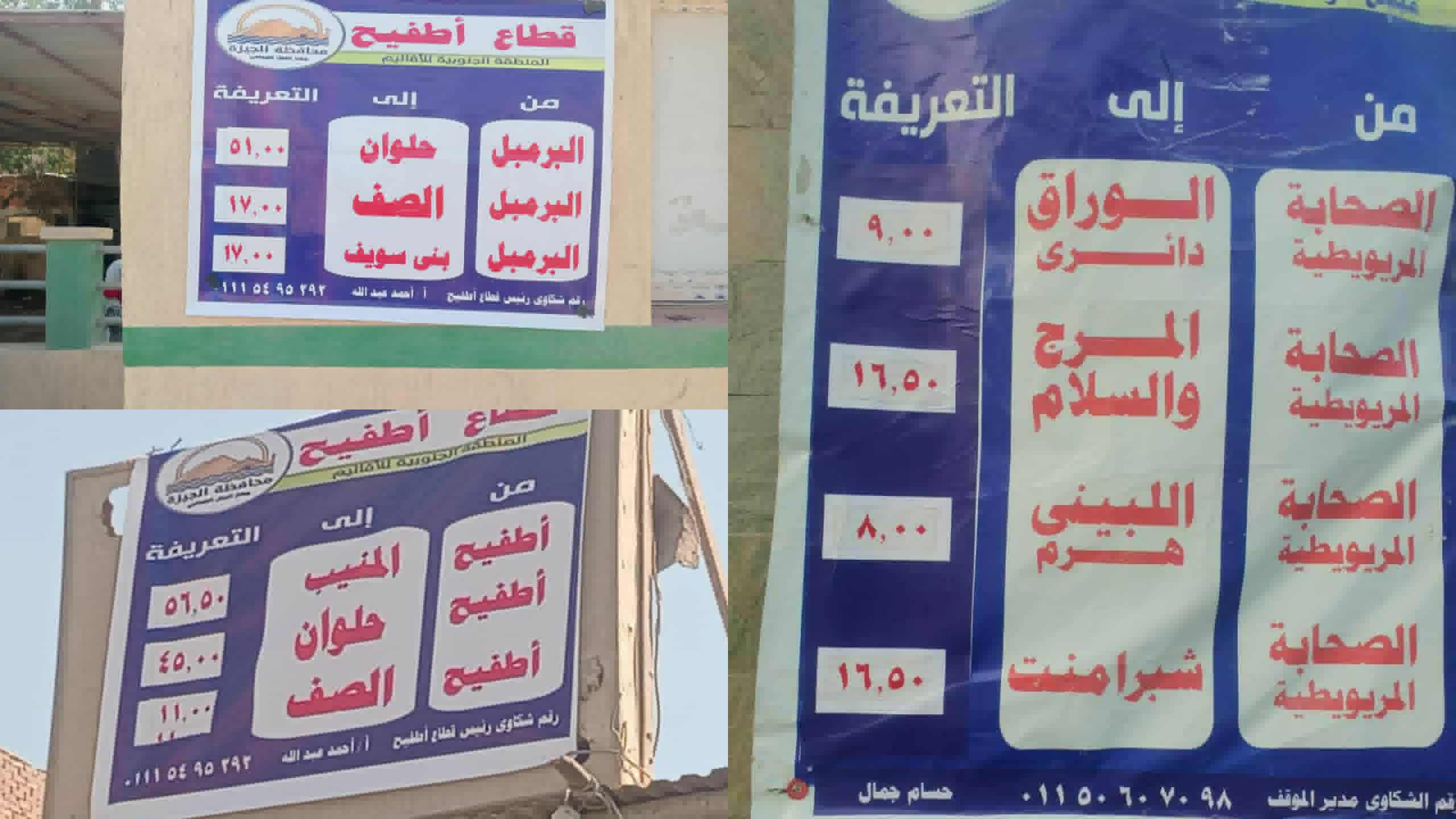 أكد المهندس عادل النجار محافظ الجيزة أنه تم تعليق اللافتات والبنرات والملصقات الخاصة بالتعريفة الجديدة لسيارات السرفيس والنقل الجماعي بجميع المواقف ومحطات النقل الداخلية والخارجية، وذلك عقب اعتماد التعريفة الجديدة تنفيذاً لقرار لجنة التسعير التلقائي للمنتجات البترولية بوزارة البترول بتحريك أسعار المواد البترولية.