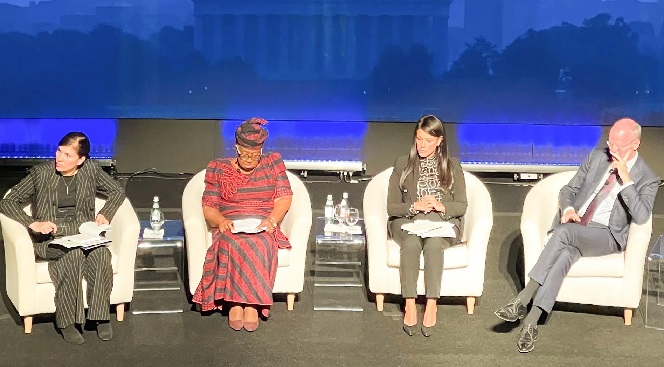 جاء ذلك خلال مشاركتها في جلسة نقاشية حول «البنية العالمية الناشئة»، وذلك خلال فعاليات الندوة المصرفية الدولية السنوية الأربعون لمجموعة الثلاثين بواشنطن، في ختام زيارتها لواشنطن للمشاركة بالاجتماعات السنوية لمجموعة البنك الدولي، بحضور كريستالينا جيورجييفا، مديرة صندوق النقد الدولي، وكريستين لاجارد، رئيسة البنك المركزي الأوروبي، ونجوزي أوكونجو إيويالا، المديرة العامة لمنظمة التجارة العالمية، وإيلان جولدفاجن، رئيس بنك التنمية للبلدان الأمريكية.