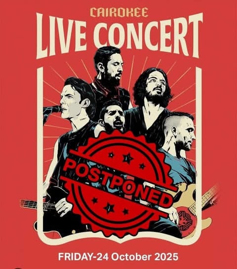 أعلنت فرقة كايروكي الغنائية عبر حسابها الرسمي على انستجرام، تأجيل حفلها الذي كان مقررا انعقاده يوم 24 أكتوبر الجاري في التجمع الخامس بالقاهرة، ليتم الإعلان عن إقامته يوم 31 من نفس الشهر.