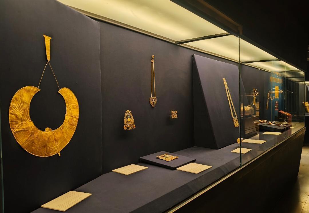 تعرض المجموعة الكاملة لمقتنيات وكنوز الفرعون الذهبي، من خلال 107 واجهات عرض زجاجية، بعد انتهاء مركز ترميم الآثار بالمتحف الكبير من ترميمها، من بينها قطع أثرية كانت في حالة سيئة من الحفظ، وموجودة بمخازن المتحف المصري بالتحرير، ولم يتم عرضها من قبل؛ حيث سيكون أول عرض لها بقاعة "توت عنخ آمون" عند افتتاح المتحف الكبير.