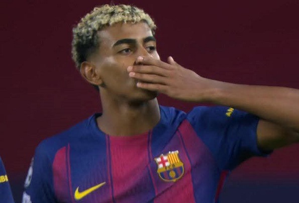 خطف النجم الإسباني الشاب لامين يامال الأضواء خلال فوز برشلونة الكبير على أولمبياكوس بسداسية، بعدما أهدى هدفه في المباراة إلى صديقته المغنية الأرجنتينية نيكي نيكول، في لفتة لاقت تفاعلًا واسعًا على مواقع التواصل الاجتماعي.