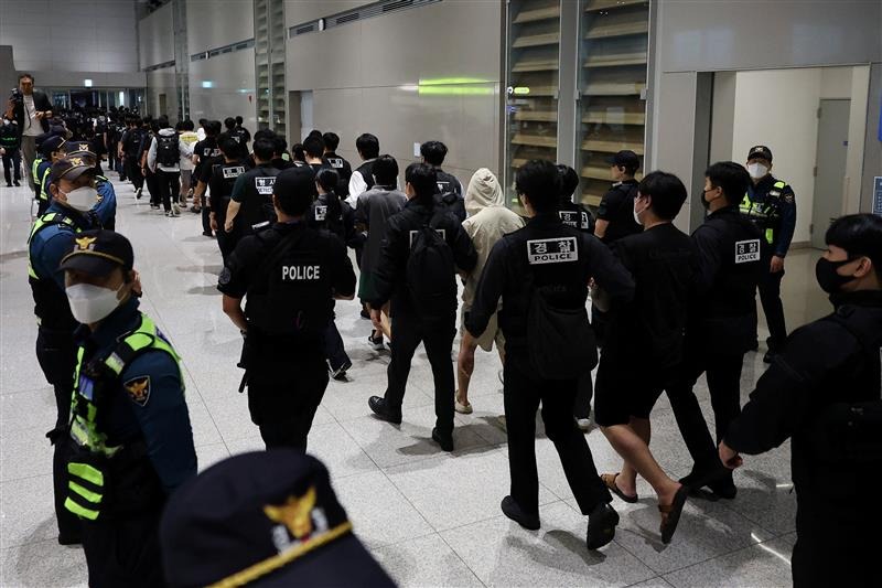 وأعادت كمبوديا، الجمعة الماضية، نحو 50 كوريا جنوبيا، تم اعتقالهم رسميا لاتهامهم بالعمل مع منظمات احتيال إلكتروني.