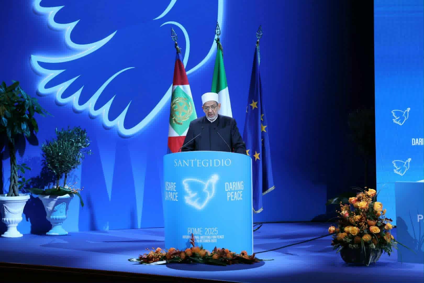 شيخ الأزهر من المؤتمر العالمي للسلام بروما: لا سلام في الشَّرق الأوسط بدون إقامة الدولة الفلسطينيَّة المستقلَّة وعاصمتها القدس الشَّريف
