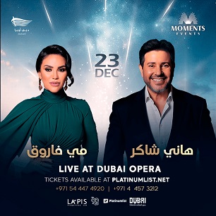 ووصفت الجهة المنظمة، الحفل قائلة: "أمير الغناء العربي هاني شاكر والفنانة مي فاروق يوم 23 ديسمبر في شهرة طربية مميزة بانتظاركم في دبي أوبرا".